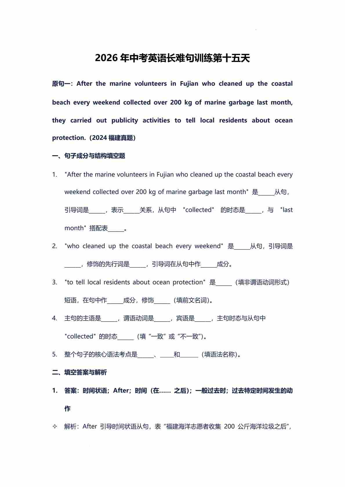 2026年中考英语长难句训练第十五天