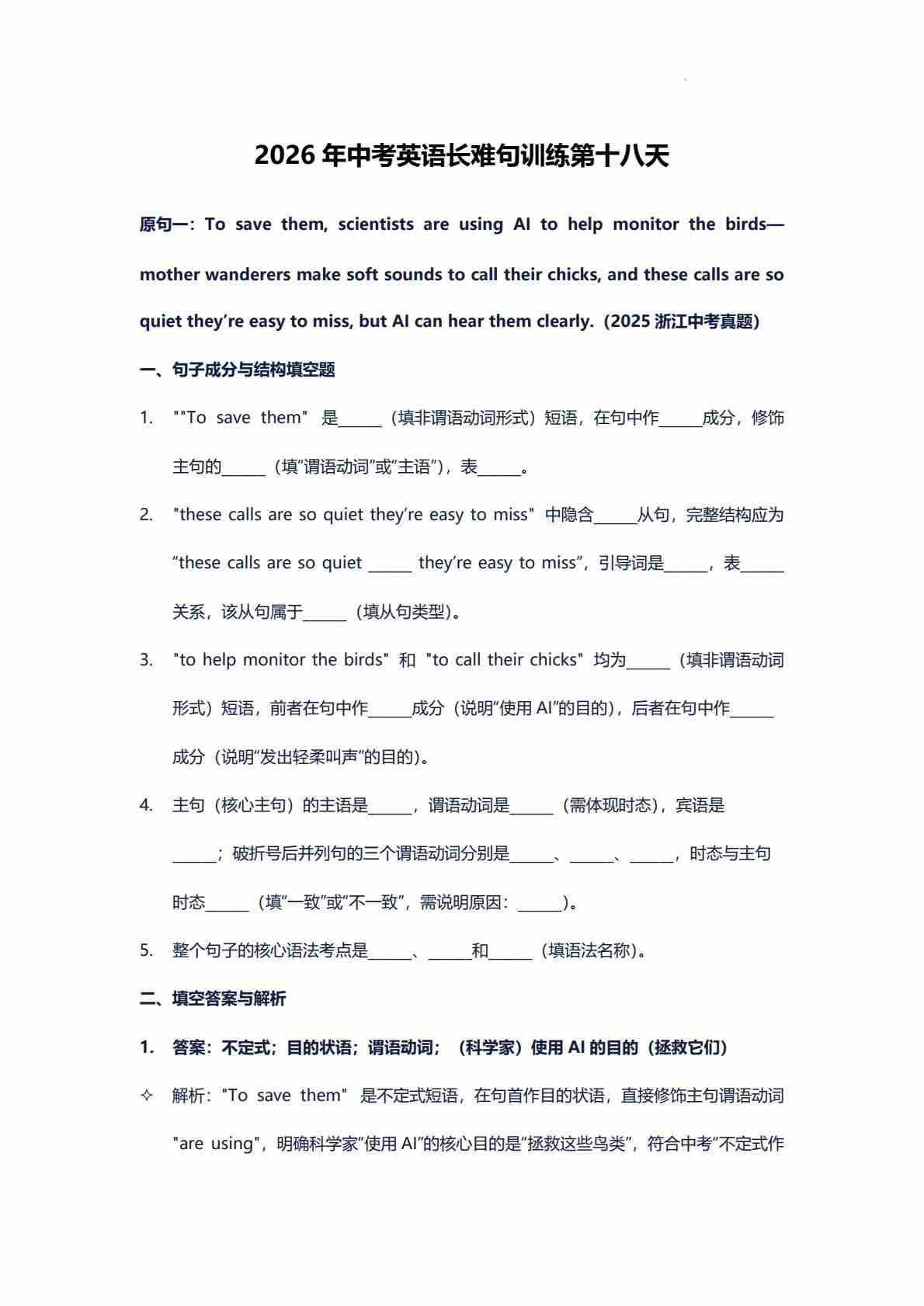 2026年中考英语长难句训练第十八天