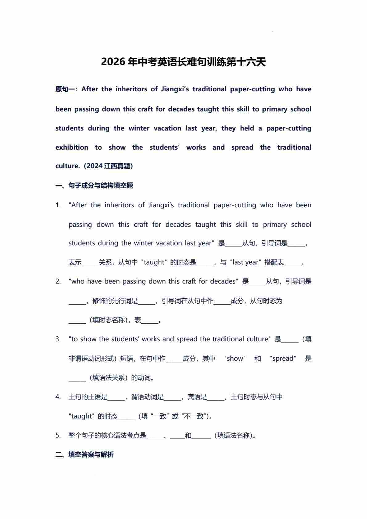 2026年中考英语长难句训练第十六天