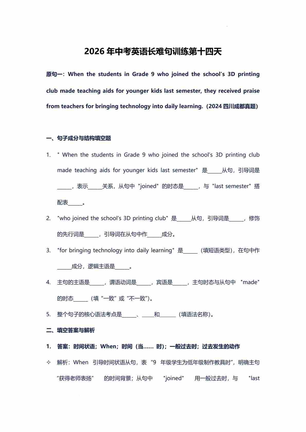 2026年中考英语长难句训练第十四天