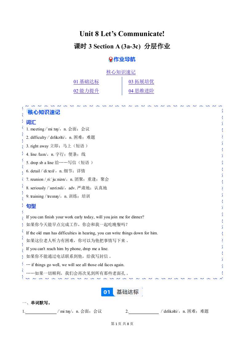 Unit 8 课时3 Section A(3a-3c)(分层作业)(原卷版)