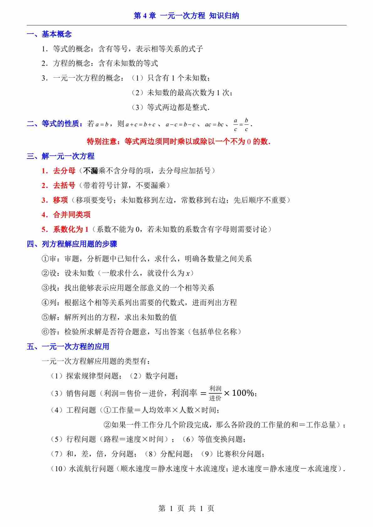 第4章 一元一次方程(知识归纳)