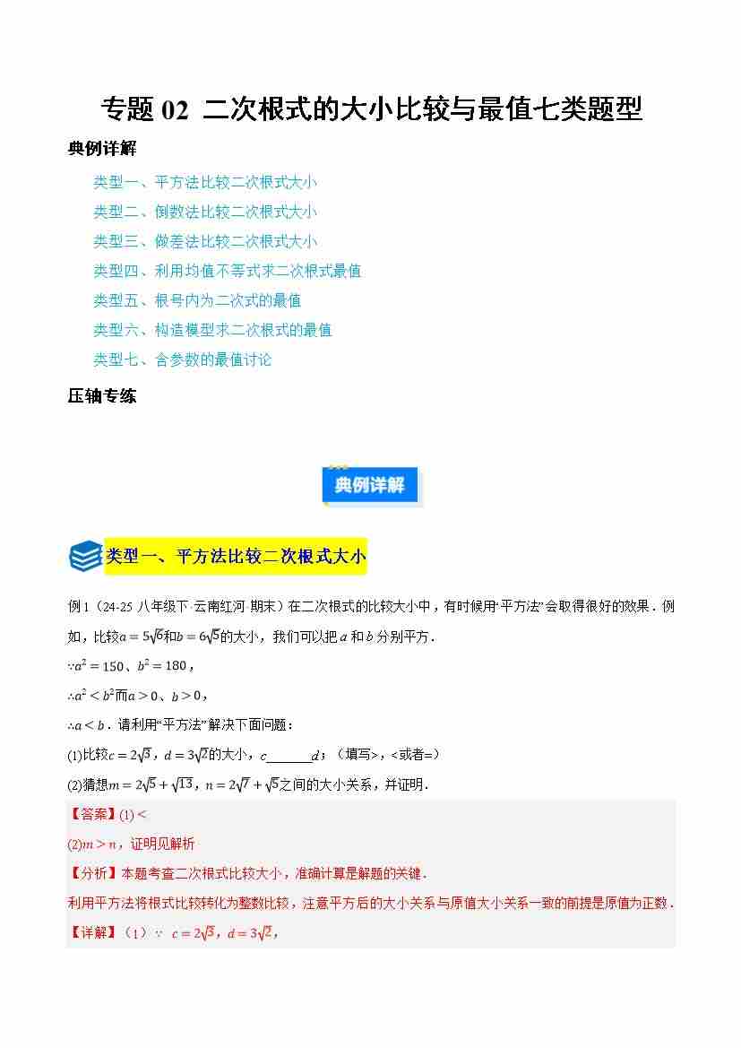 专题02 二次根式的大小比较与最值七类题型(压轴题专项训练)(解析版)