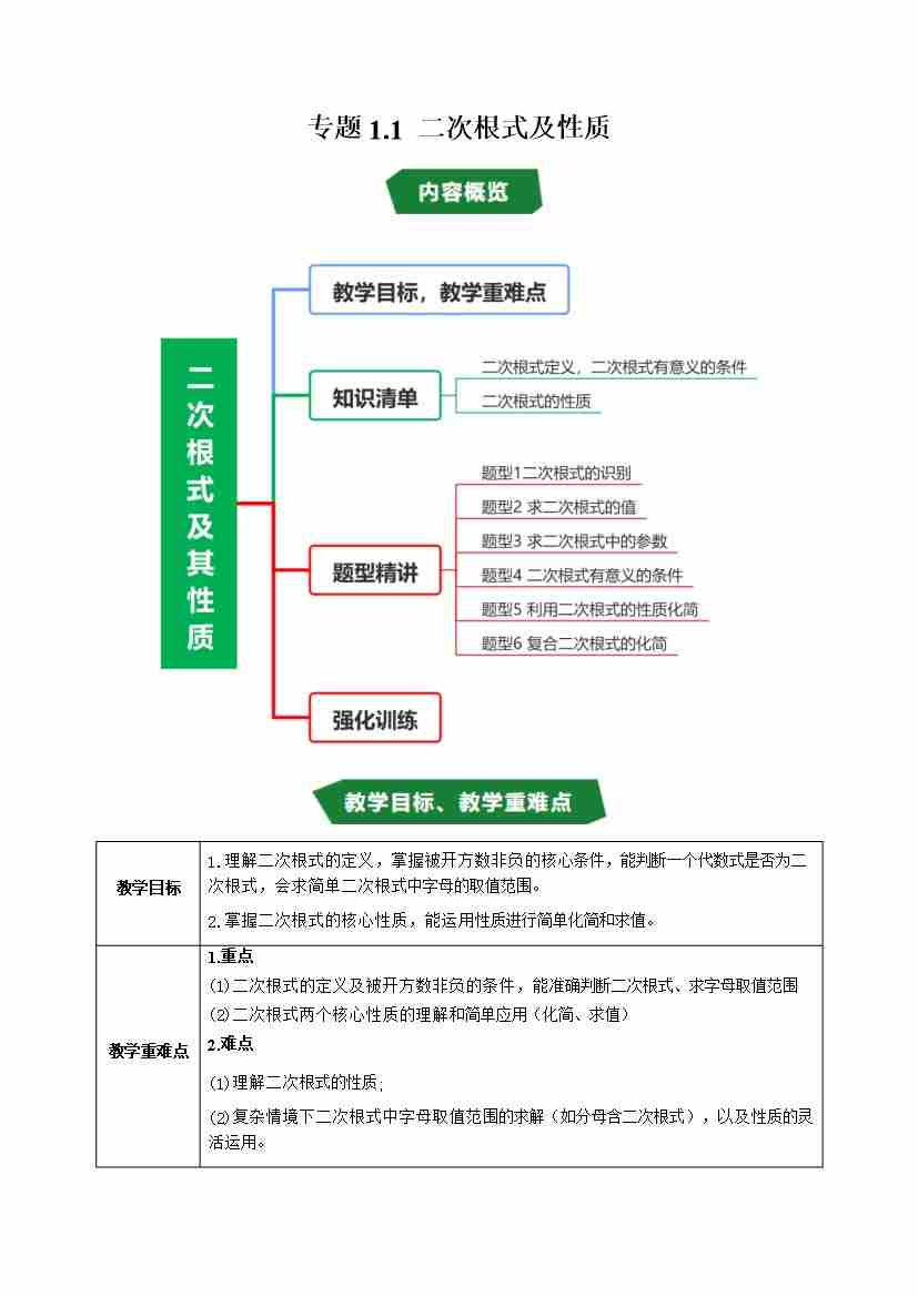 专题1.1 二次根式及性质(高效培优讲义)(试题版)