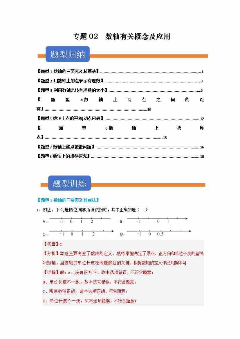 专题02 数轴有关概念及应用(八大高频题型三大易错题型)(教师版)