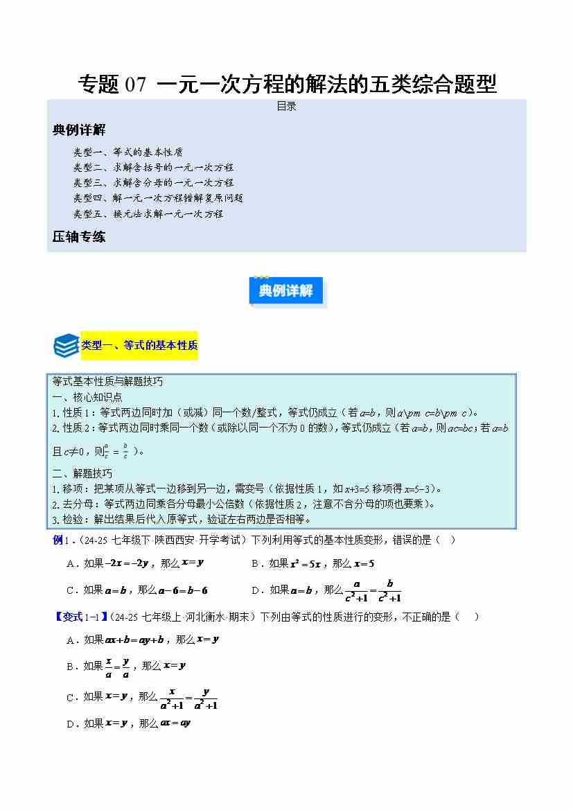 专题07 一元一次方程的解法的五类综合题型(压轴题专项训练)(学生版)