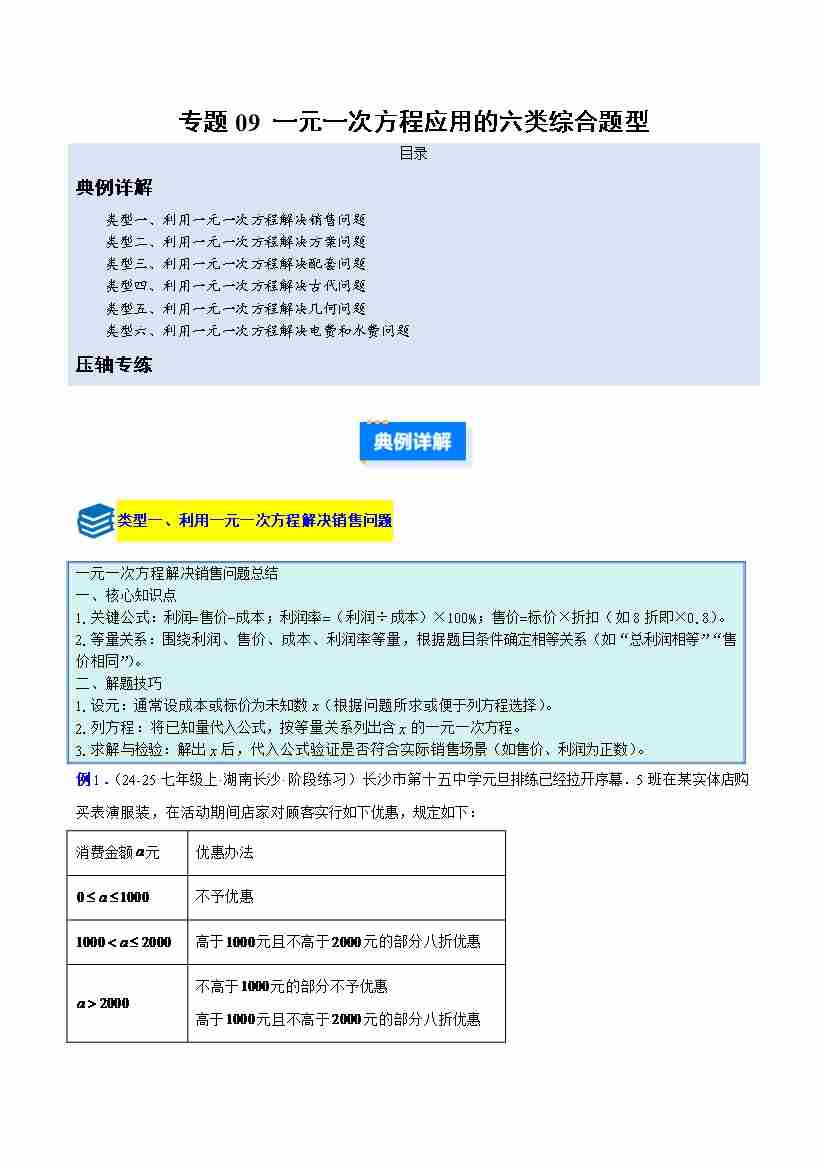 专题09 一元一次方程应用的六类综合题型(压轴题专项训练)(学生版)