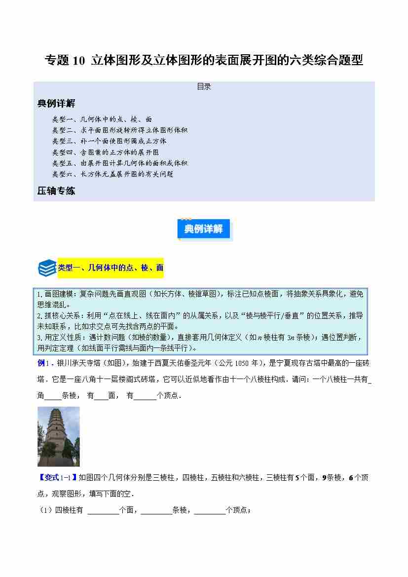 专题10 立体图形及立体图形的表面展开图的六类综合题型(压轴题专项训练)(学生版)