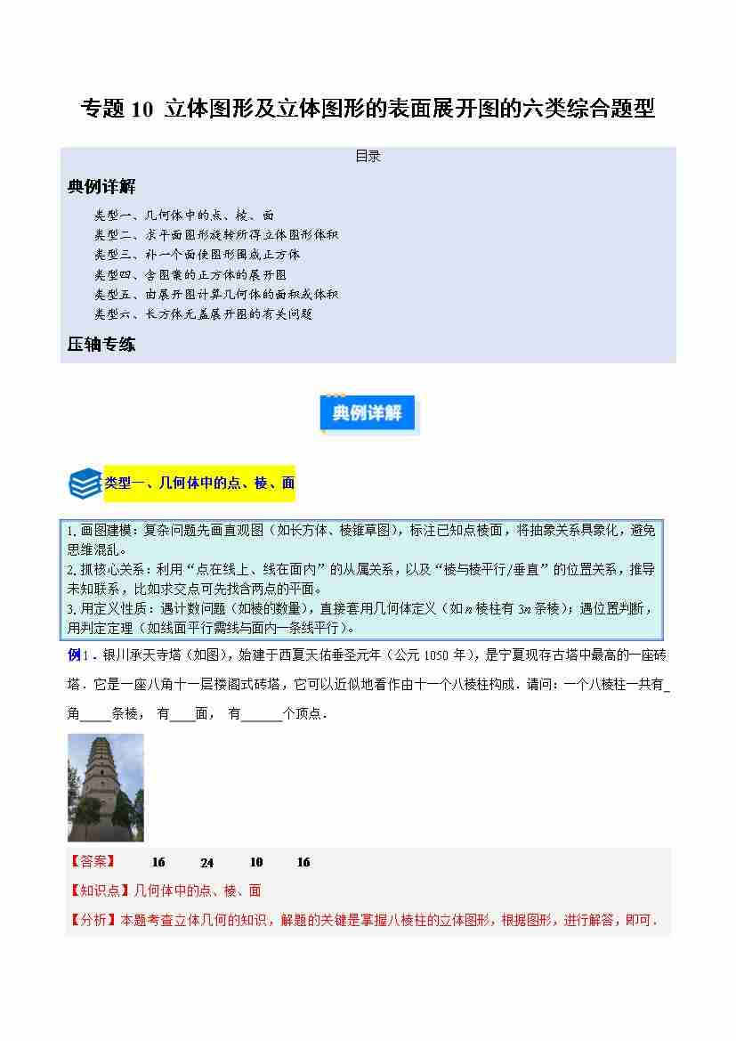 专题10 立体图形及立体图形的表面展开图的六类综合题型(压轴题专项训练)(教师版)