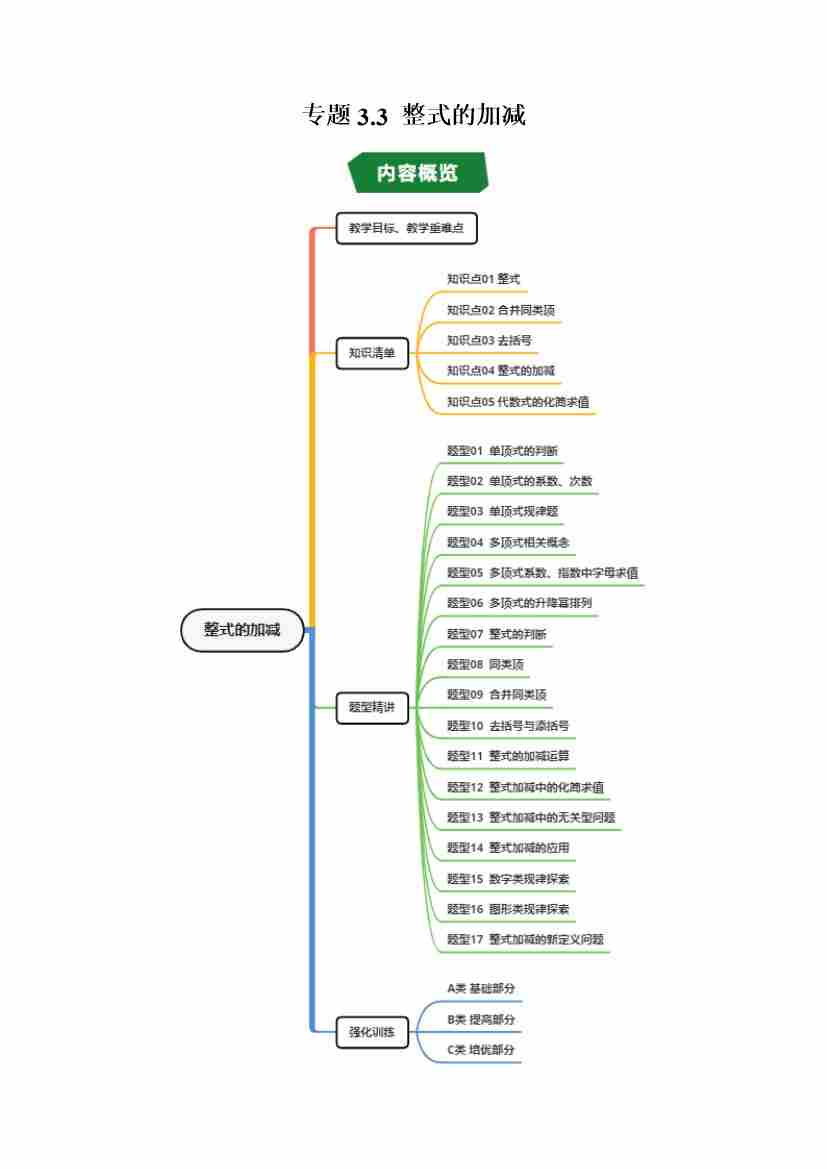 专题3.3 整式的加减(高效培优讲义) (学生版)
