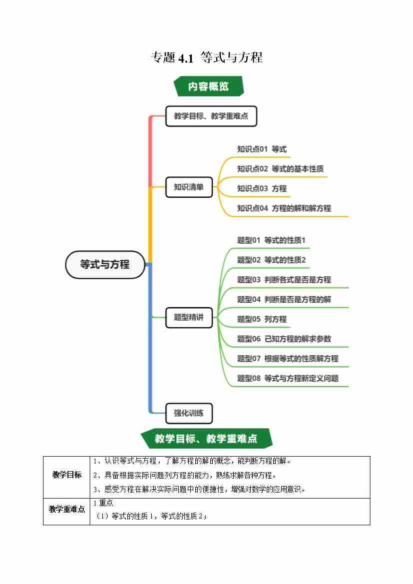 专题4.1 等式与方程(高效培优讲义)(学生版)