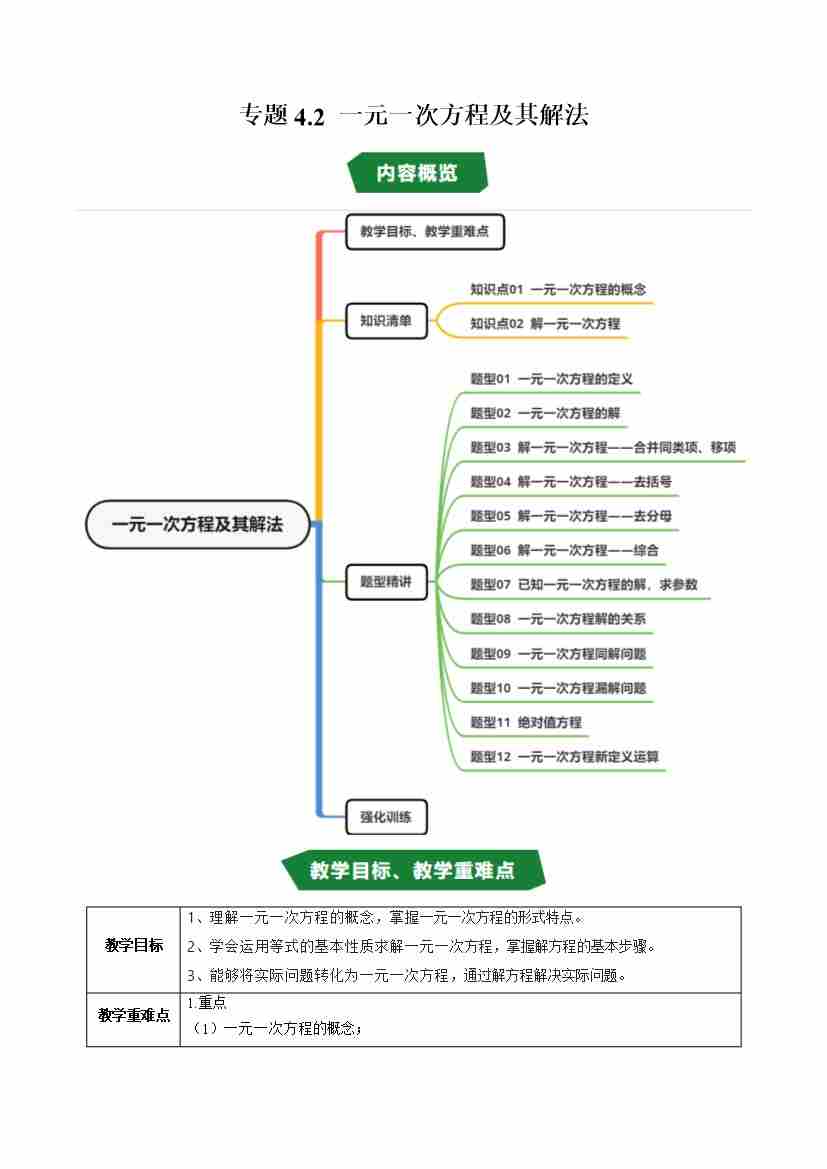 专题4.2 一元一次方程及其解法(高效培优讲义)(学生版)