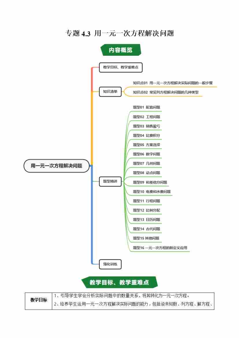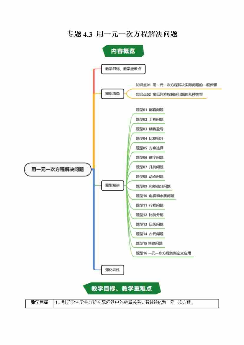 专题4.3 用一元一次方程解决问题(高效培优讲义)(学生版)