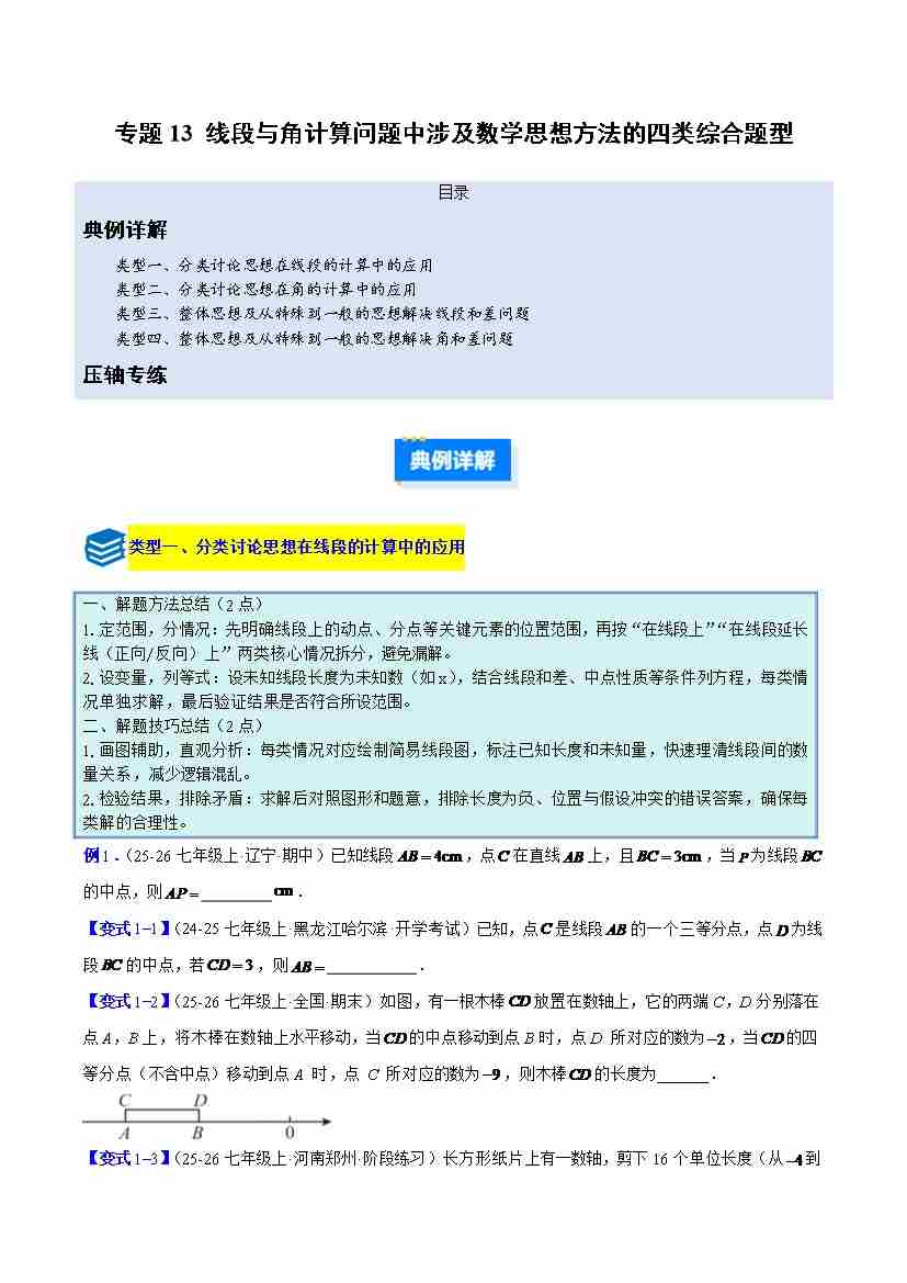 专题13 线段与角计算问题中涉及数学思想方法的四类综合题型(压轴题专项训练)(学生版)