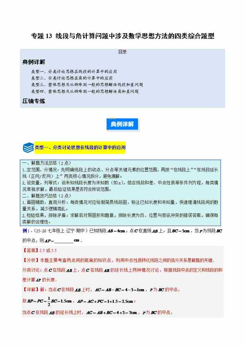 专题13 线段与角计算问题中涉及数学思想方法的四类综合题型(压轴题专项训练)(教师版)