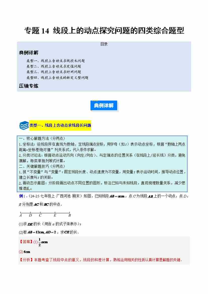 专题14 线段上的动点探究问题的四类综合题型(压轴题专项训练)(学生版)