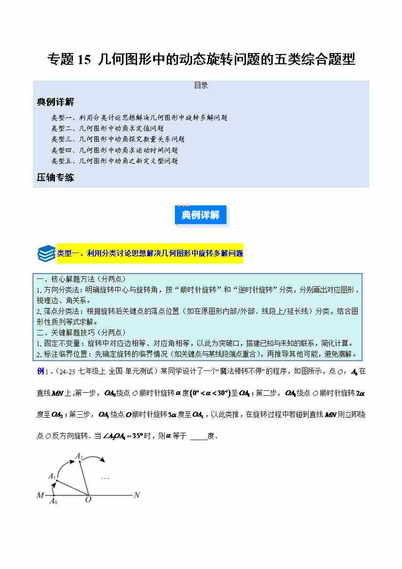 专题15 几何图形中的动态旋转问题的五类综合题型(压轴题专项训练)(学生版)