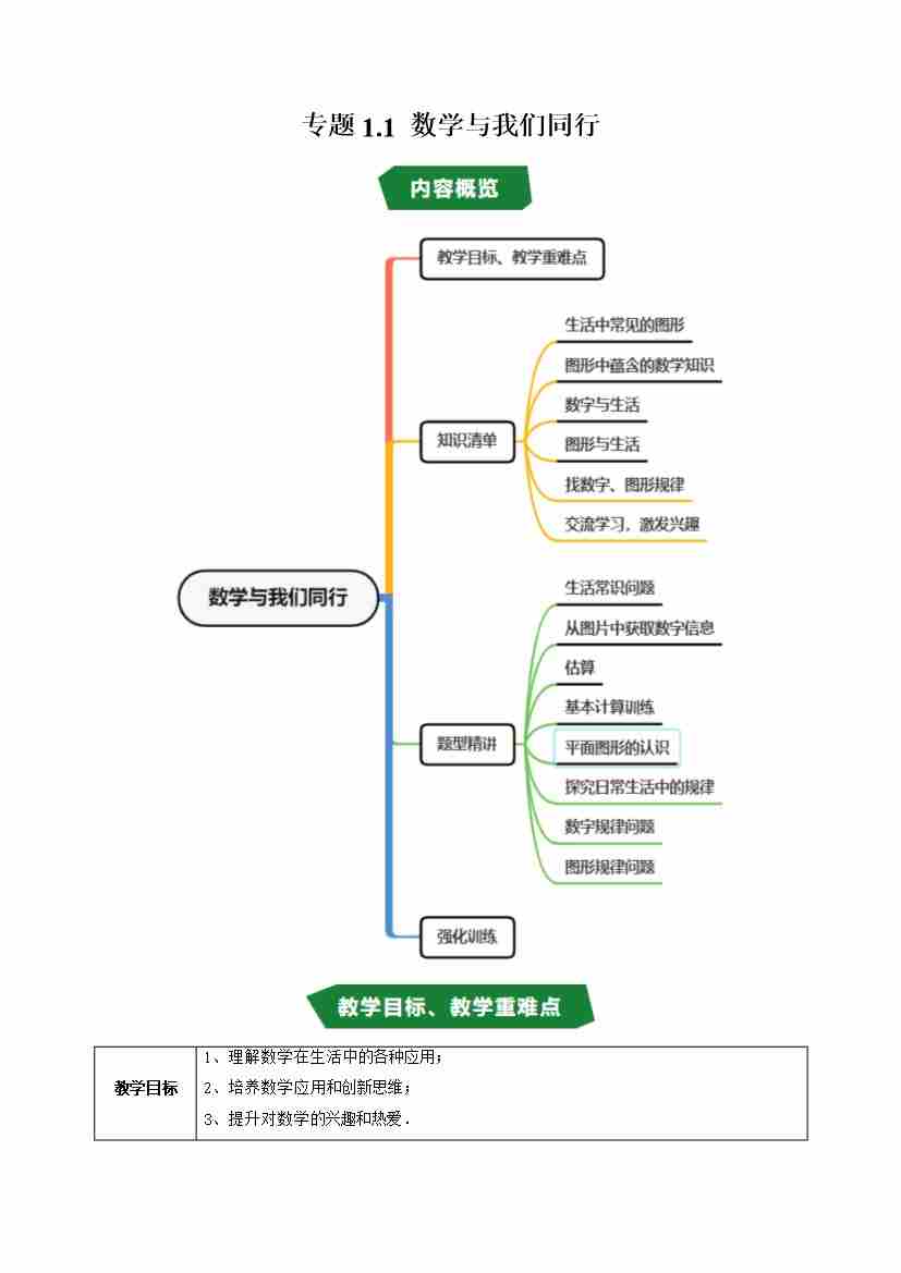 专题1.1 数学与我们同行(高效培优讲义)(学生版)