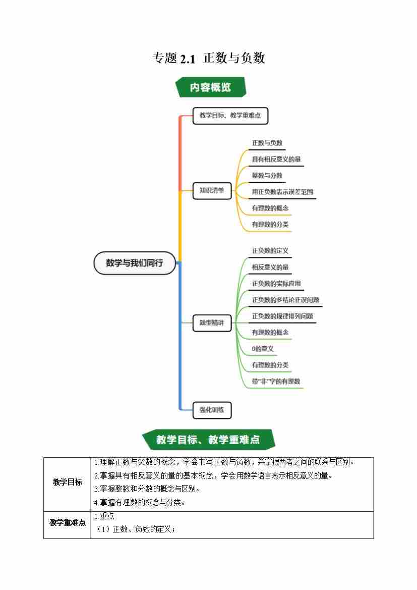 专题2.1 正数与负数(高效培优讲义)(学生版)