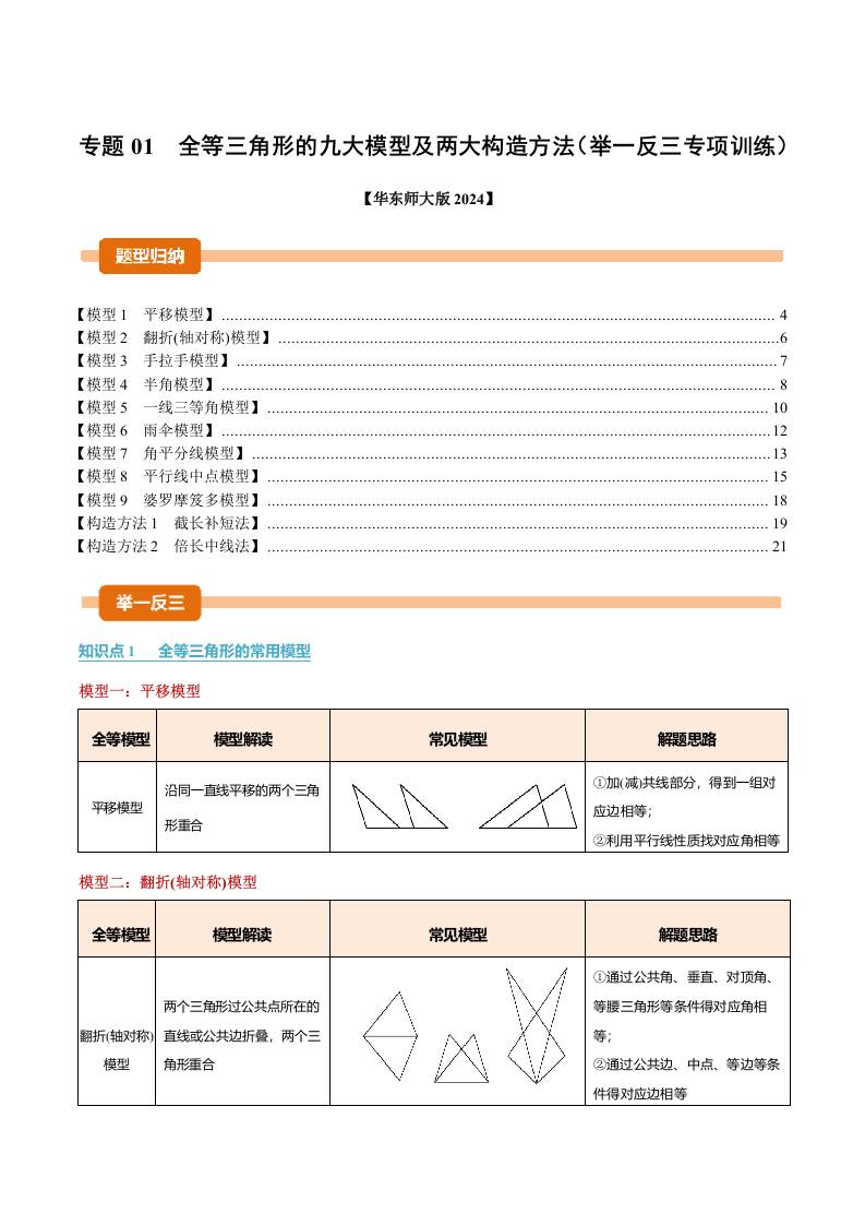 专题01 全等三角形的九大模型及两大构造方法(举一反三专项训练)(学生版)