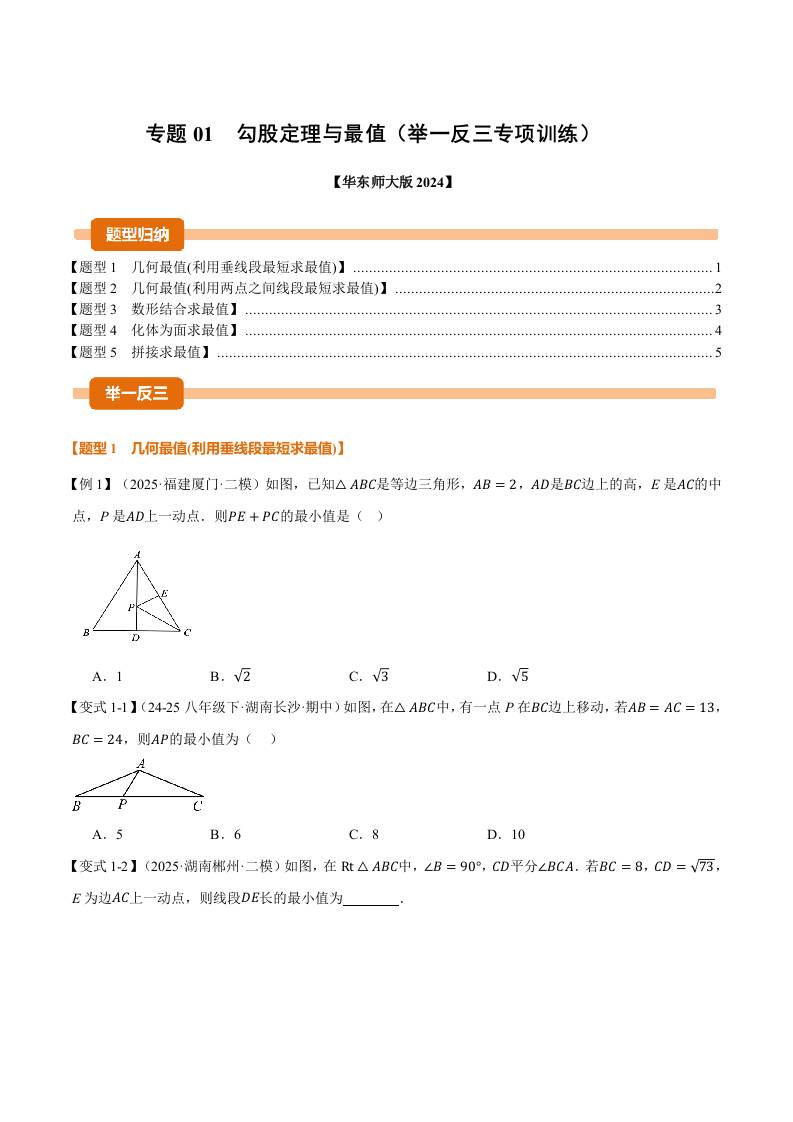 专题01 勾股定理与最值(举一反三专项训练)(学生版)
