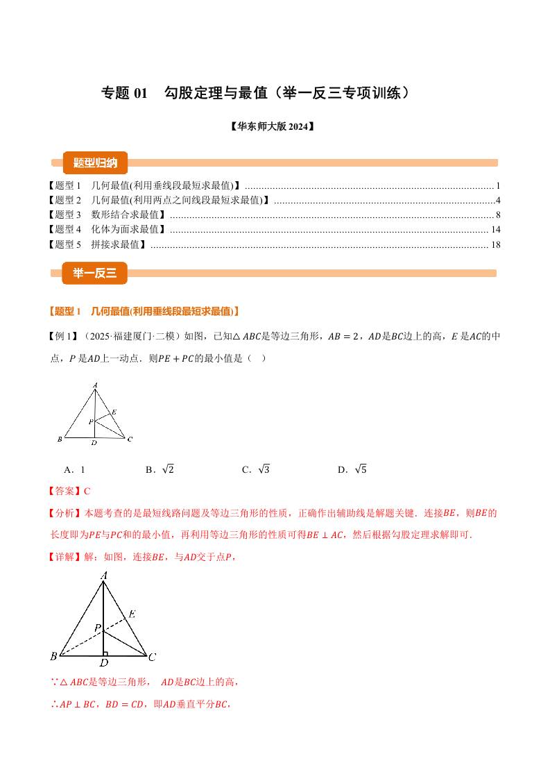 专题01 勾股定理与最值(举一反三专项训练)(教师版)