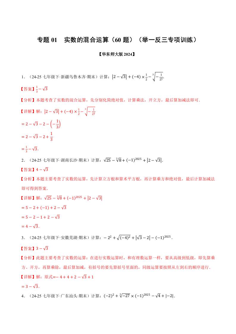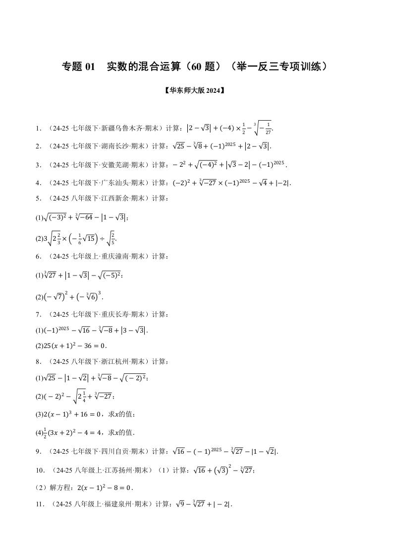 专题01 实数的混合运算(60题)(举一反三专项训练)(学生版)