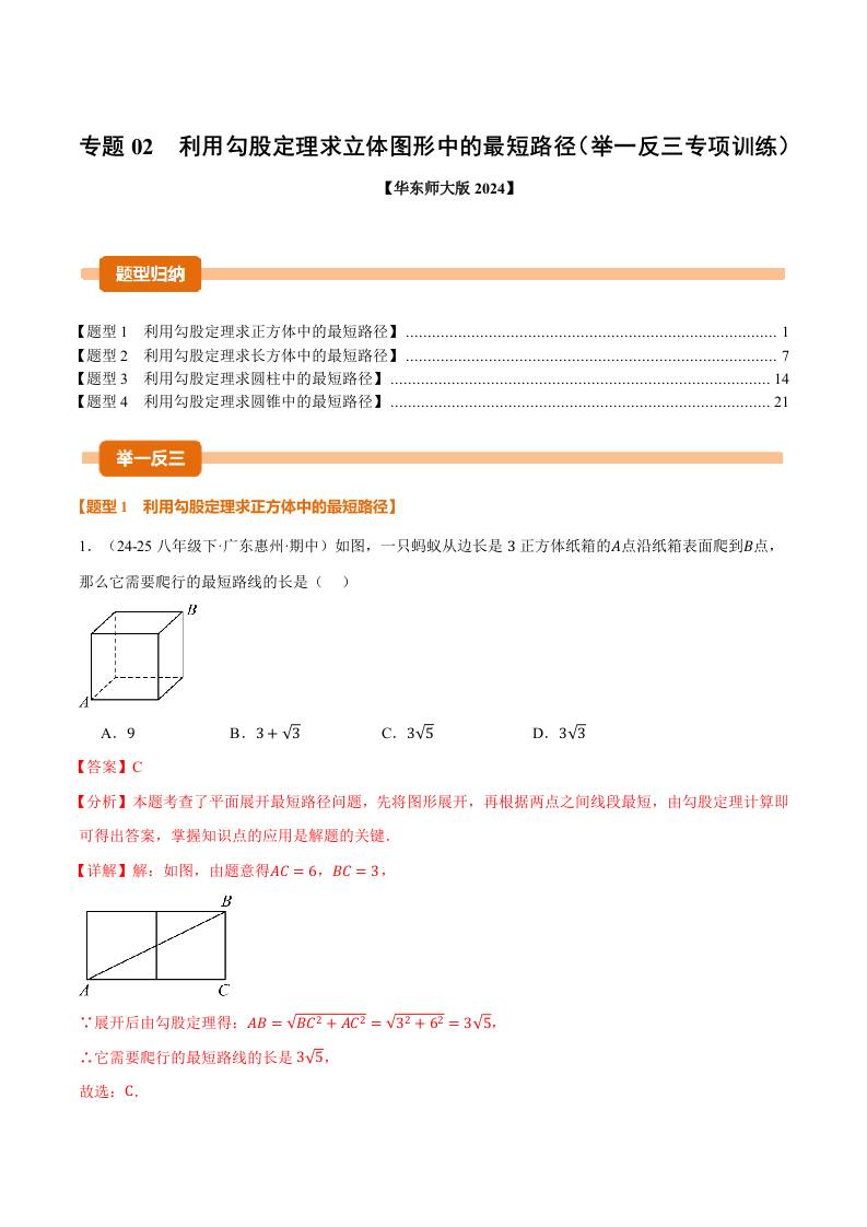 专题02 利用勾股定理求立体图形中的最短路径(举一反三专项训练)(解析版)