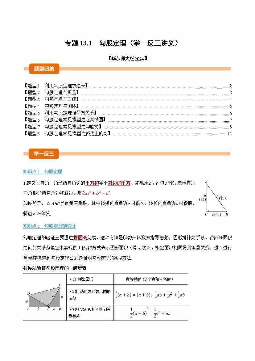 专题13.1 勾股定理(举一反三讲义)(学生版)