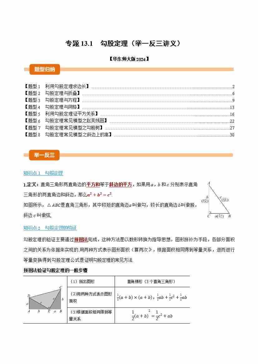 专题13.1 勾股定理(举一反三讲义)(教师版)
