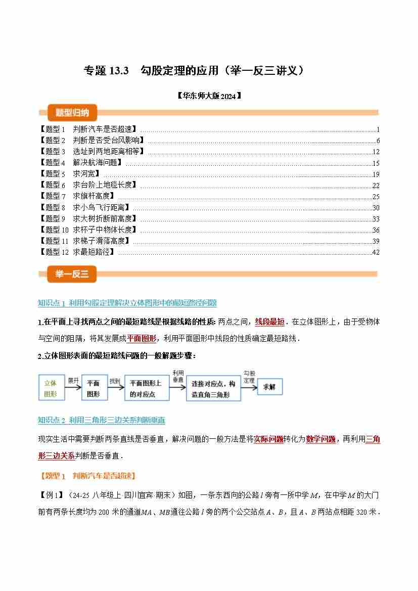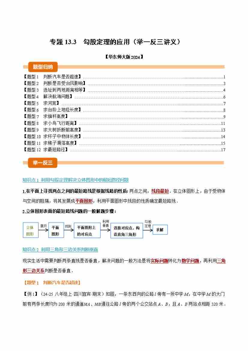 专题13.3 勾股定理的应用(举一反三讲义)(学生版)