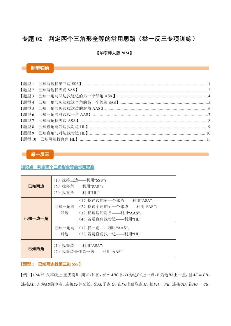 专题02 判定两个三角形全等的常用思路(举一反三专项训练)(学生版)