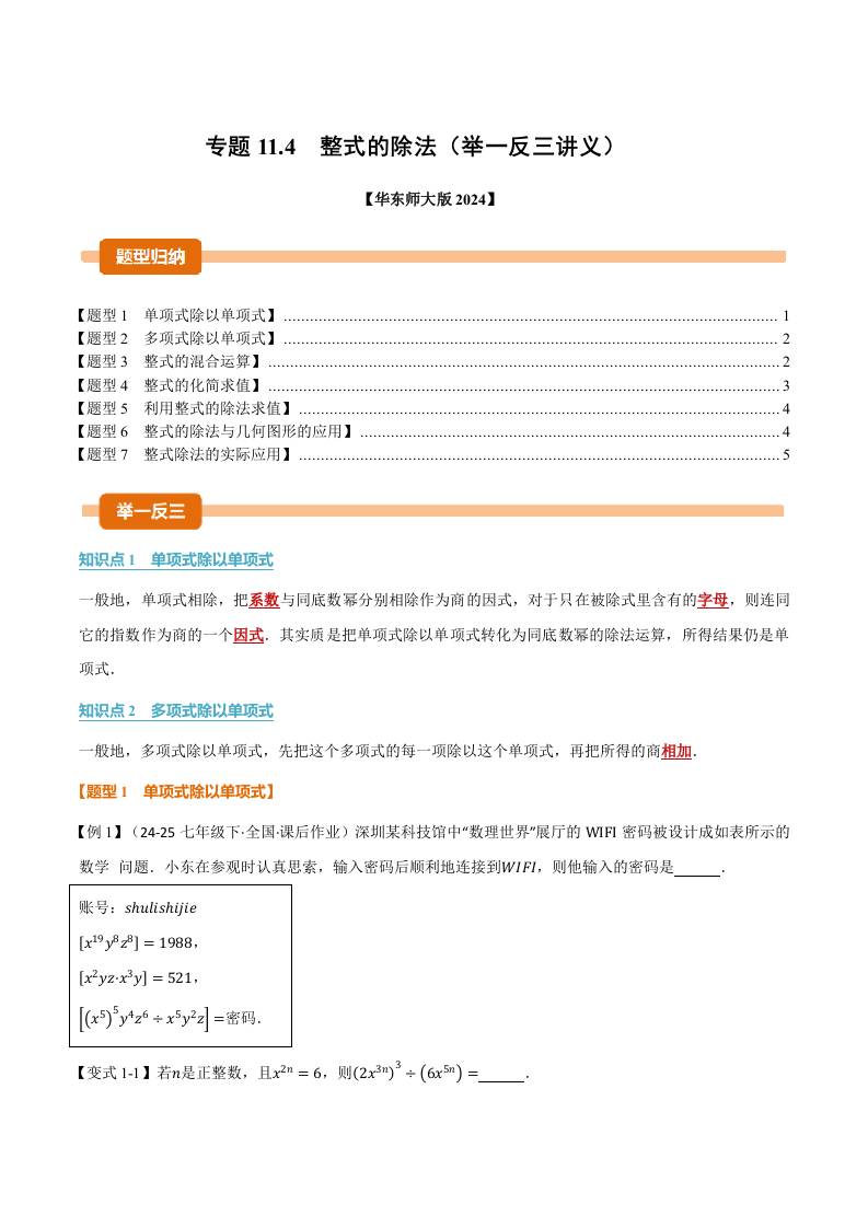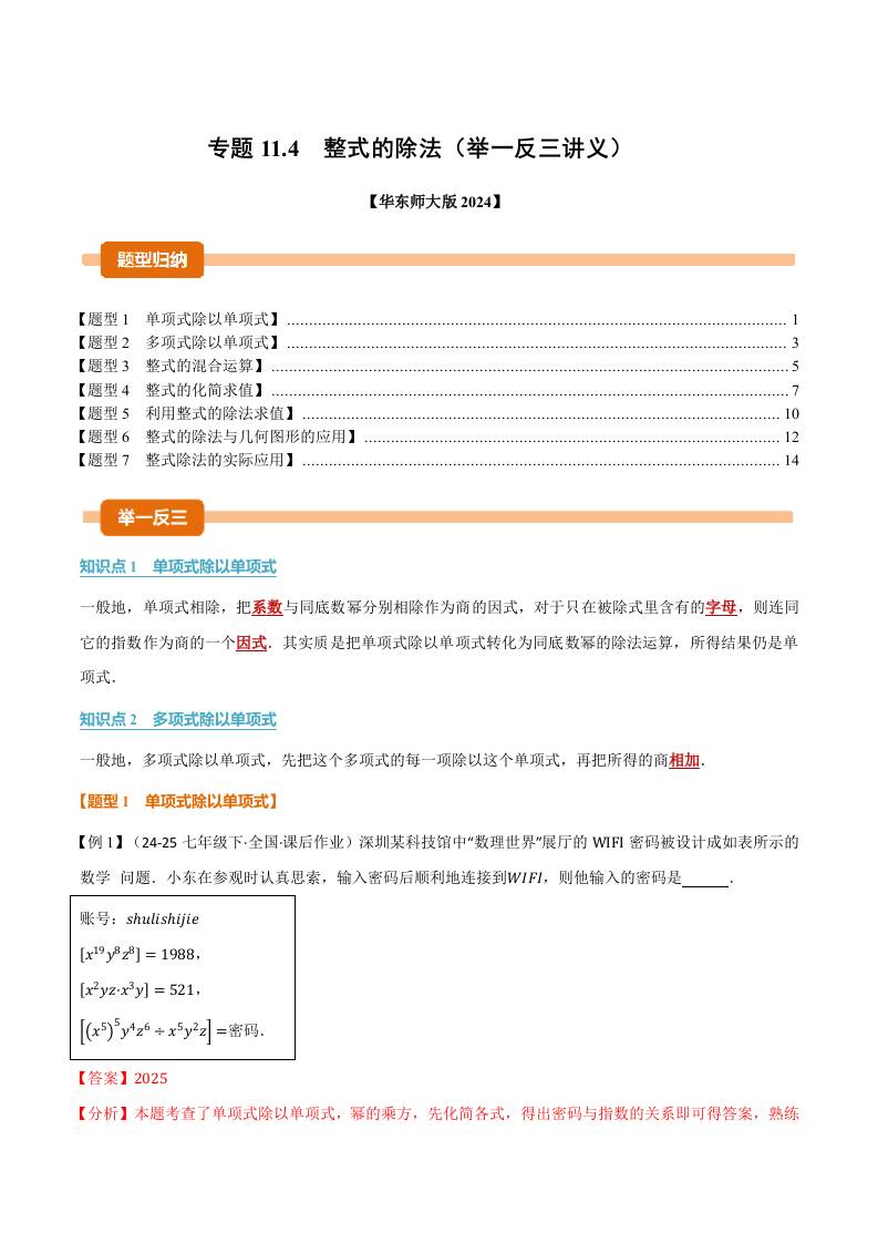 专题11.4 整式的除法(举一反三讲义) (学生版)