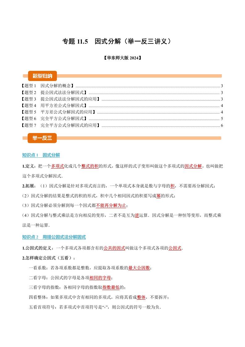 专题11.5 因式分解(举一反三讲义) (学生版)