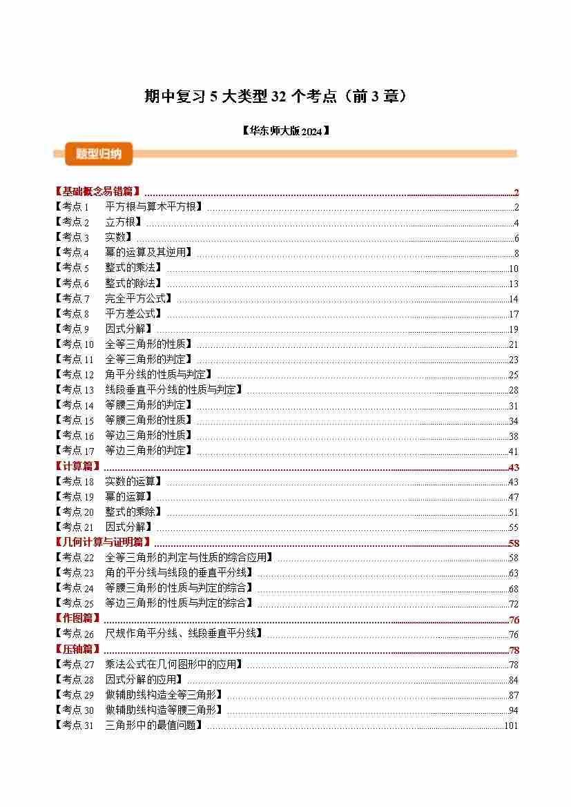 期中复习5大类型32个考点(举一反三期中专项训练)(教师版)