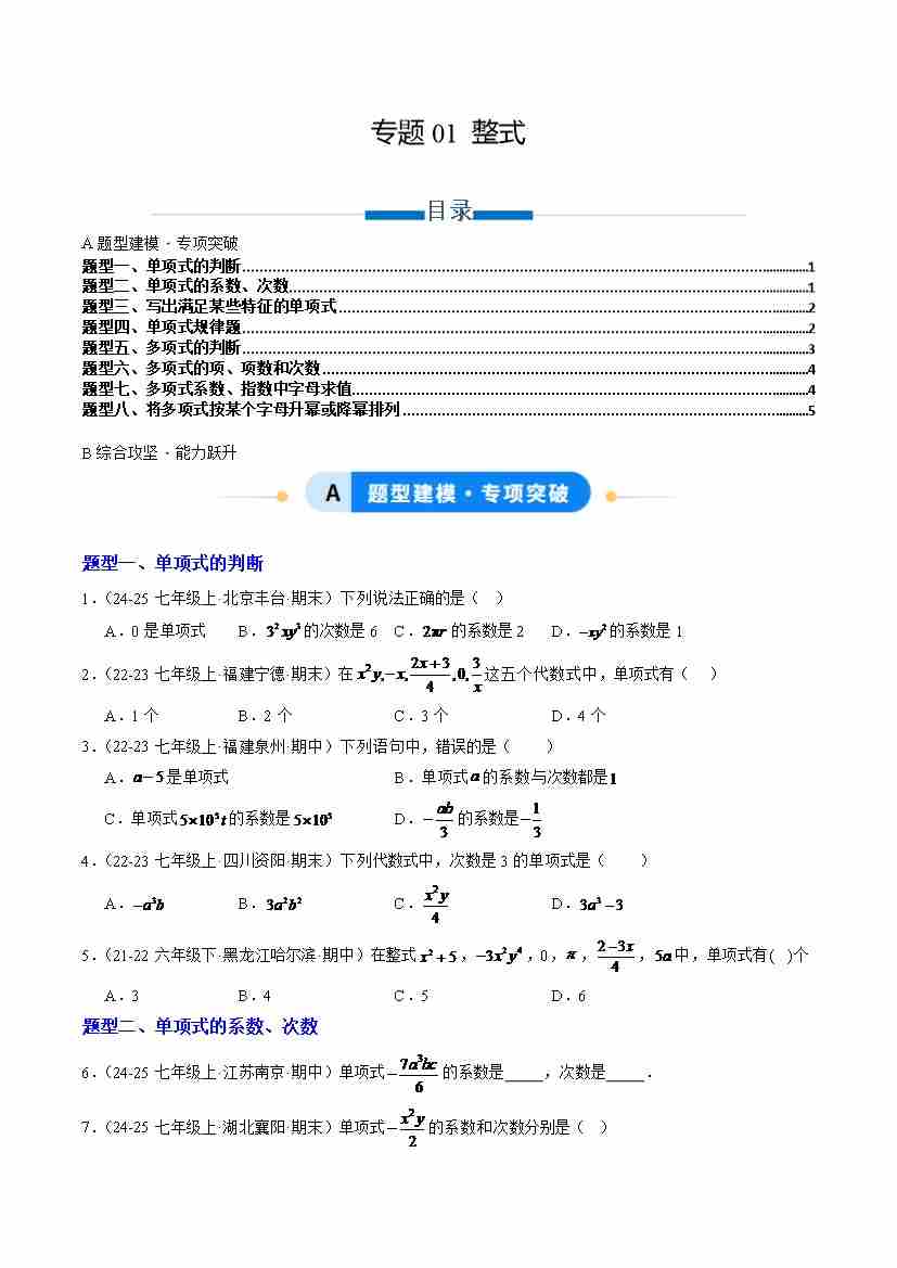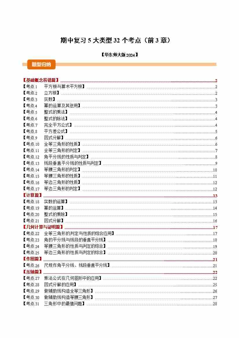 期中复习5大类型32个考点(举一反三期中专项训练)(学生版)