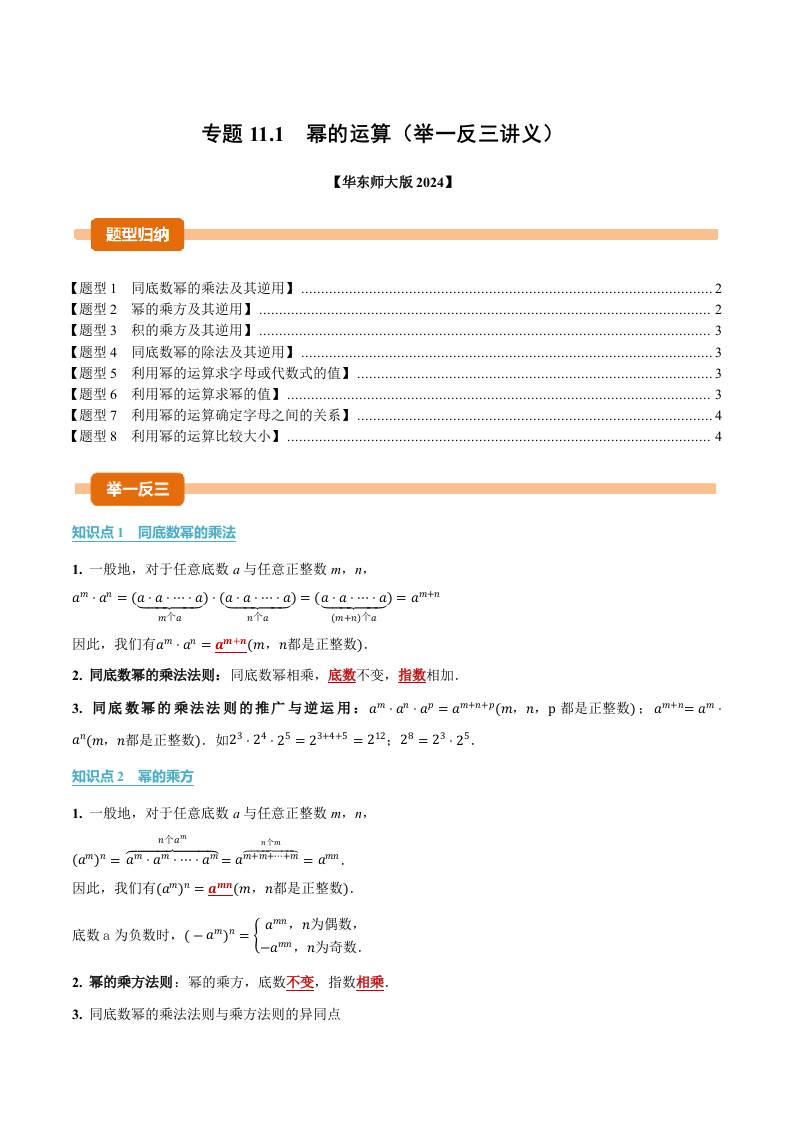 专题11.1 幂的运算(举一反三讲义)(学生版)