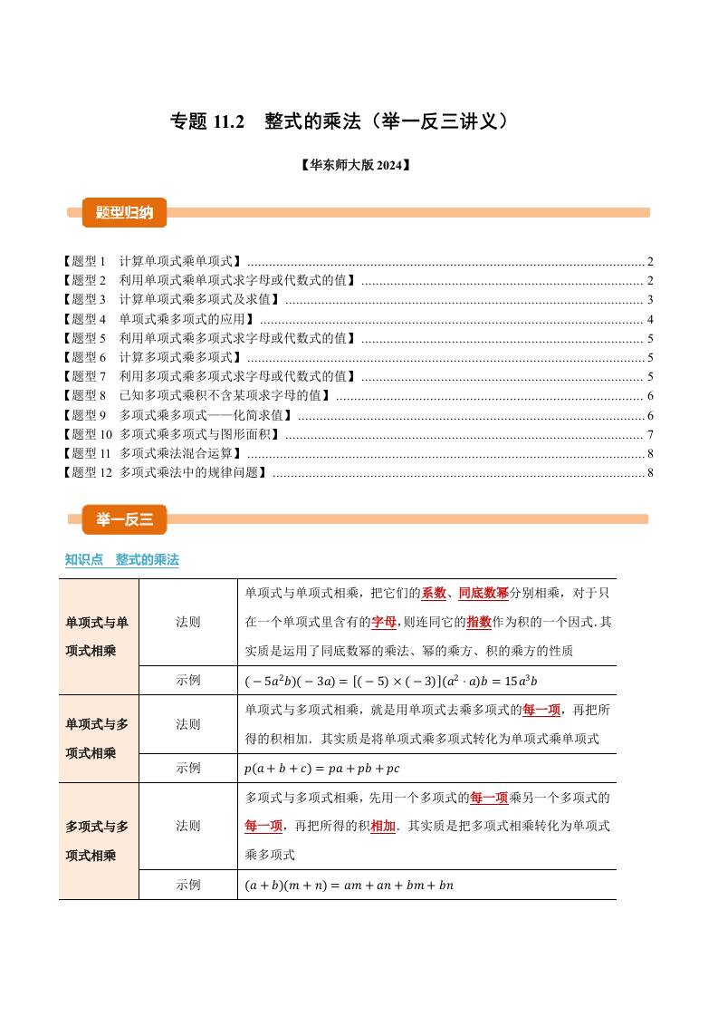 专题11.2 整式的乘法(举一反三讲义)(学生版)