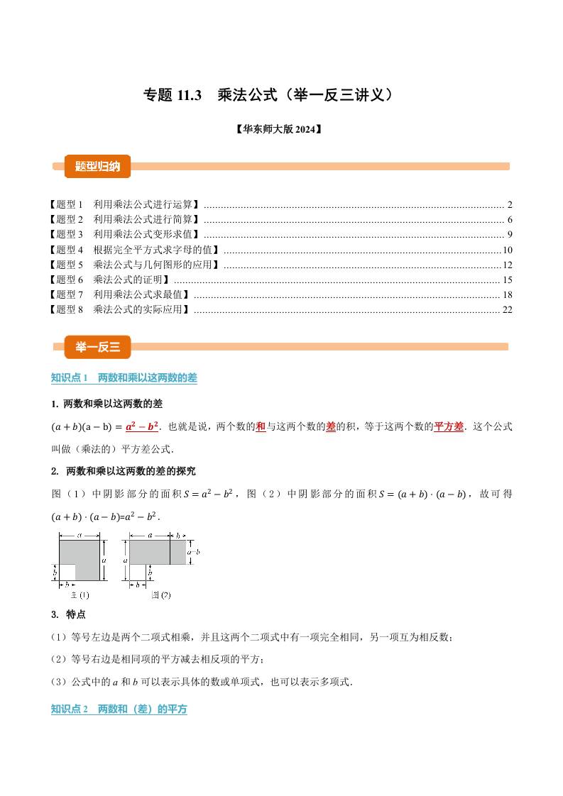 专题11.3 乘法公式(举一反三讲义) (学生版)