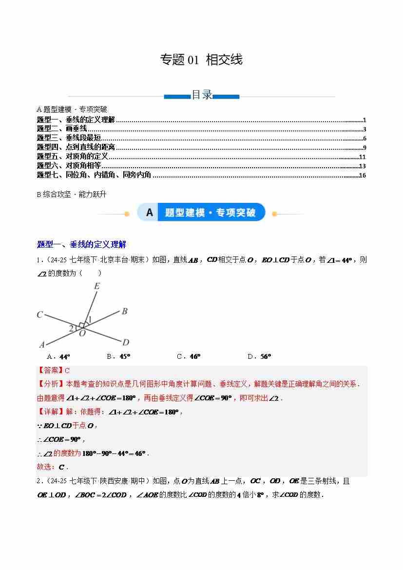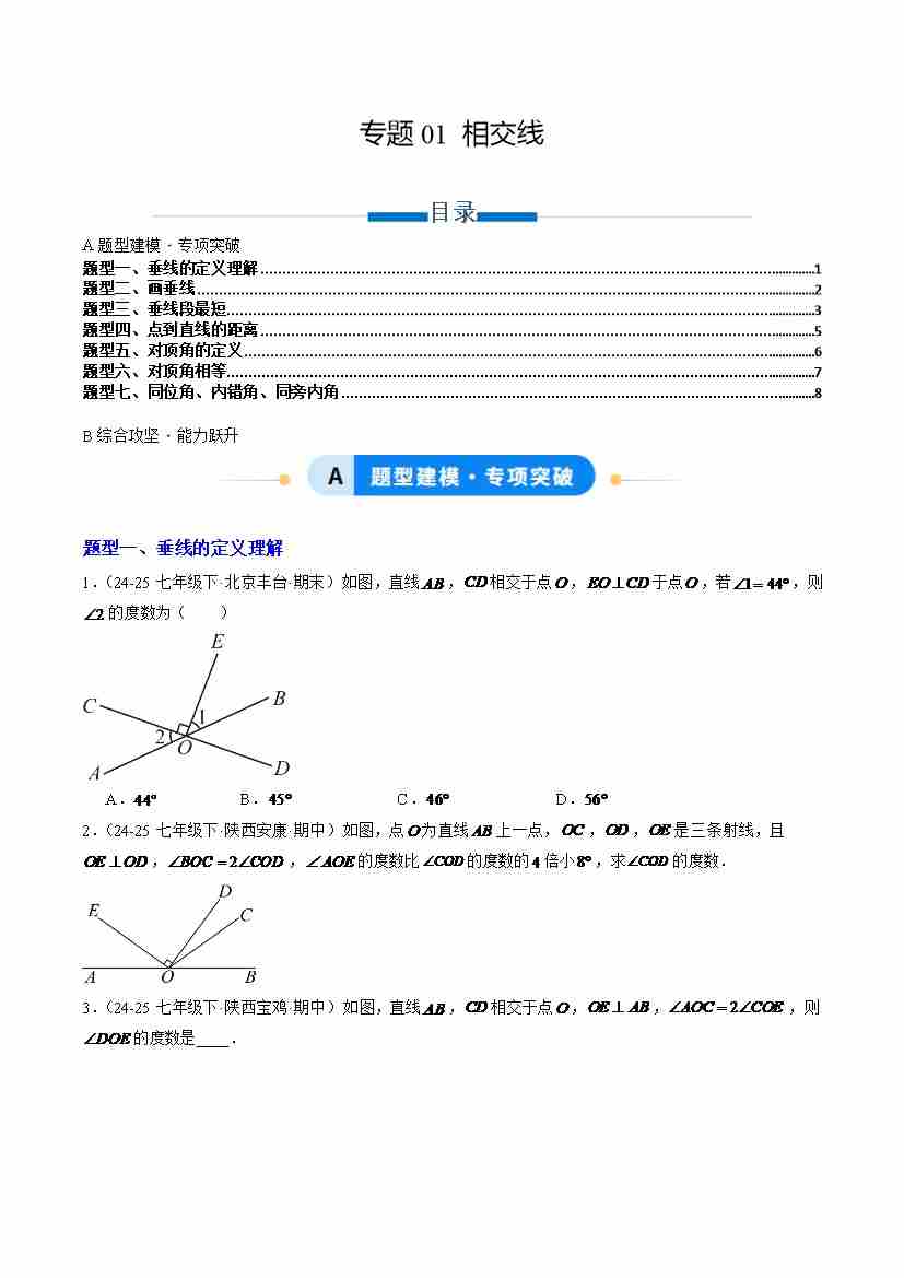 专题01 相交线(专项训练)(学生版)