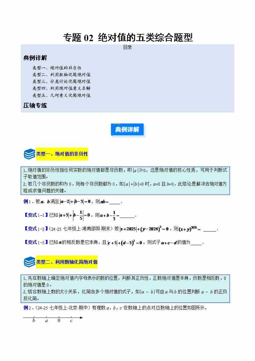 专题02 绝对值的五类综合题型(压轴题专项训练)(学生版)
