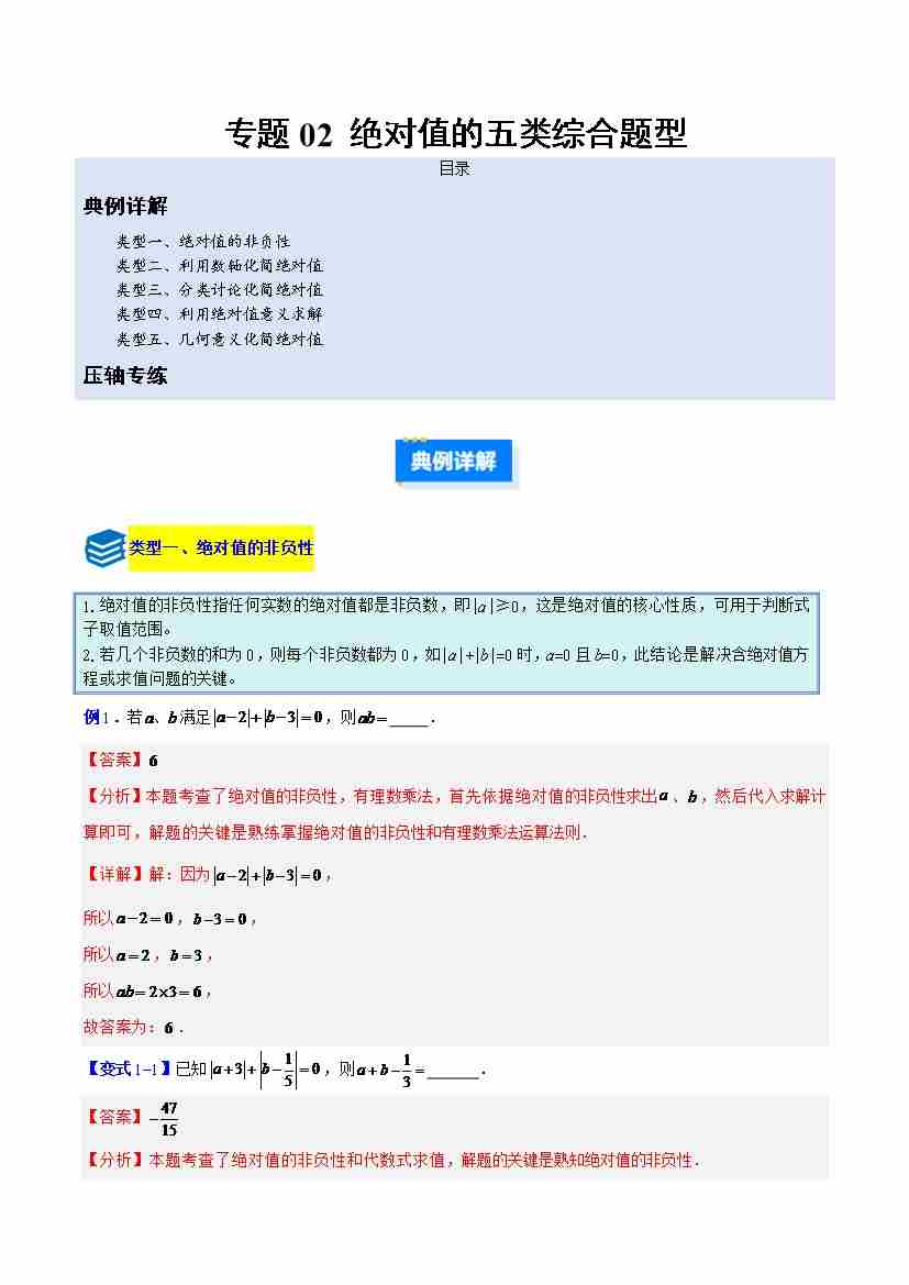 专题02 绝对值的五类综合题型(压轴题专项训练)(教师版)
