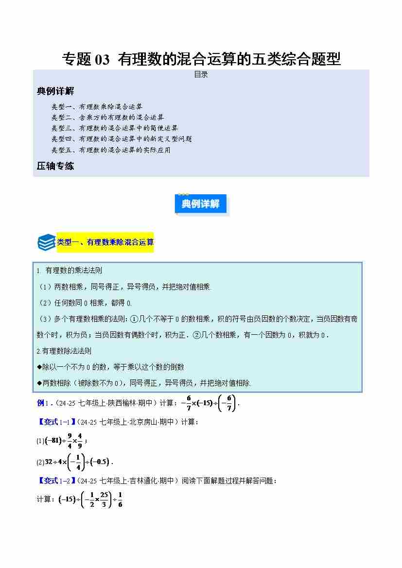 专题03 有理数的混合运算的五类综合题型(压轴题专项训练)(学生版)