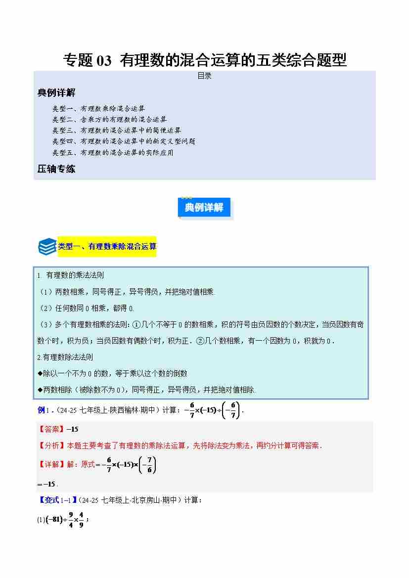专题03 有理数的混合运算的五类综合题型(压轴题专项训练)(教师版)