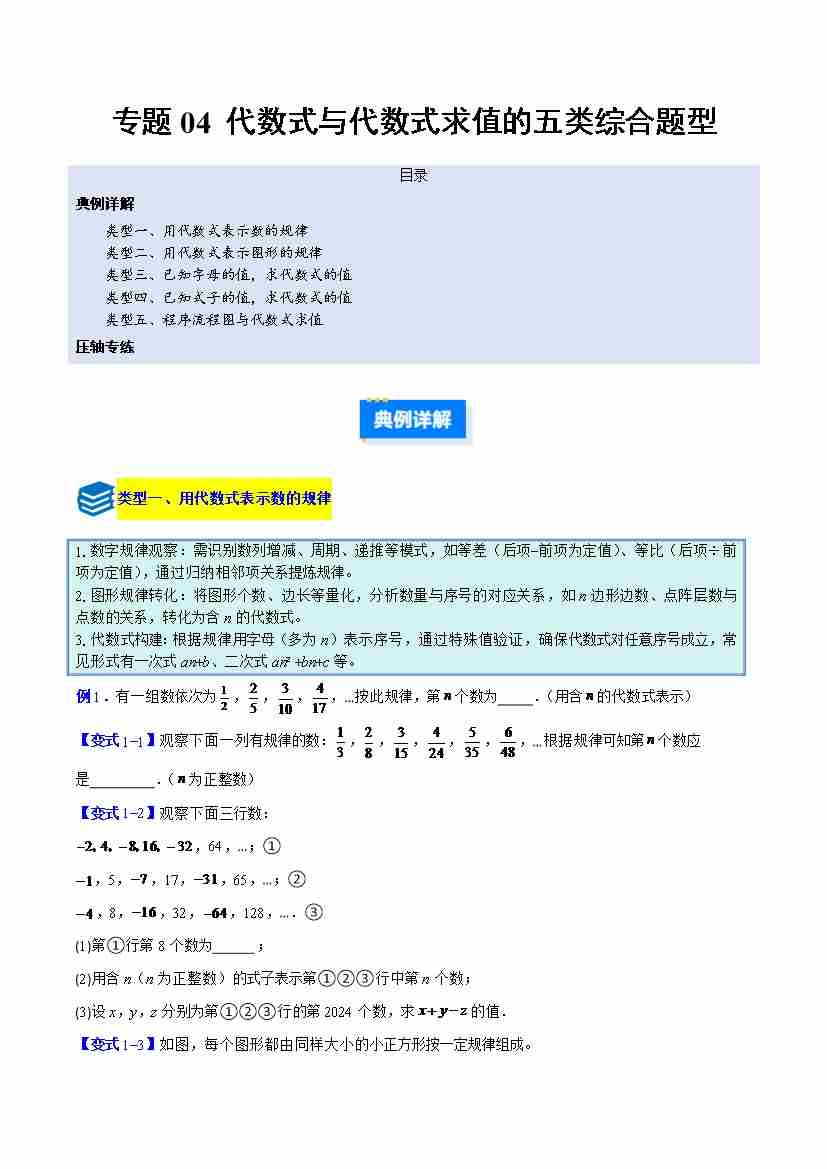 专题04 代数式与代数式求值的五类综合题型(压轴题专项训练) (学生版)