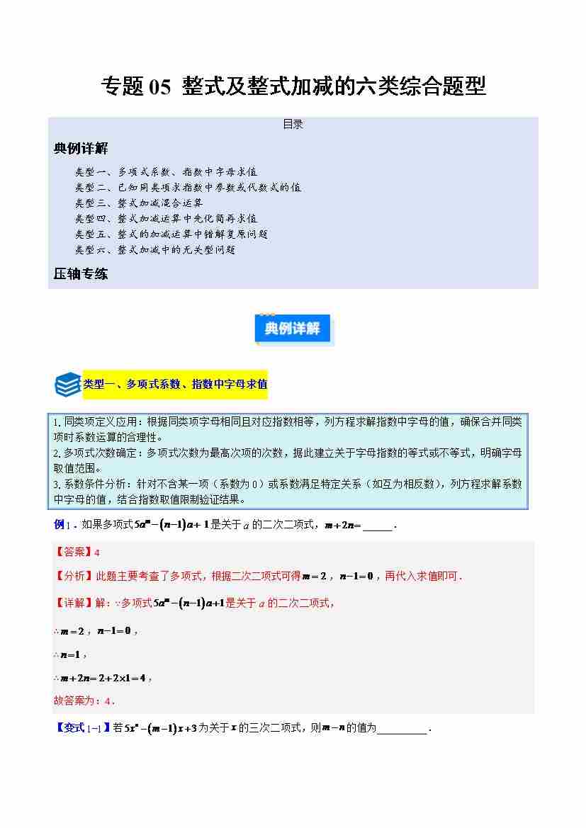 专题05 整式及整式加减的六类综合题型(压轴题专项训练) (教师版)