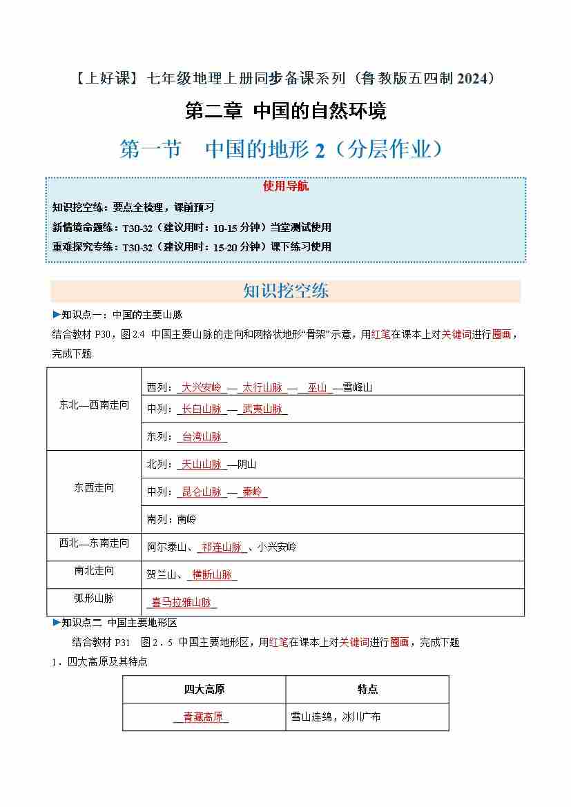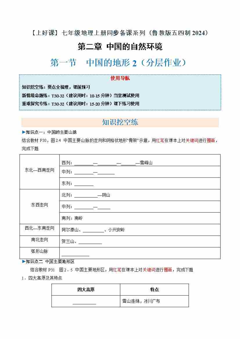 中国的地形第2课时(分层作业)(原卷版)