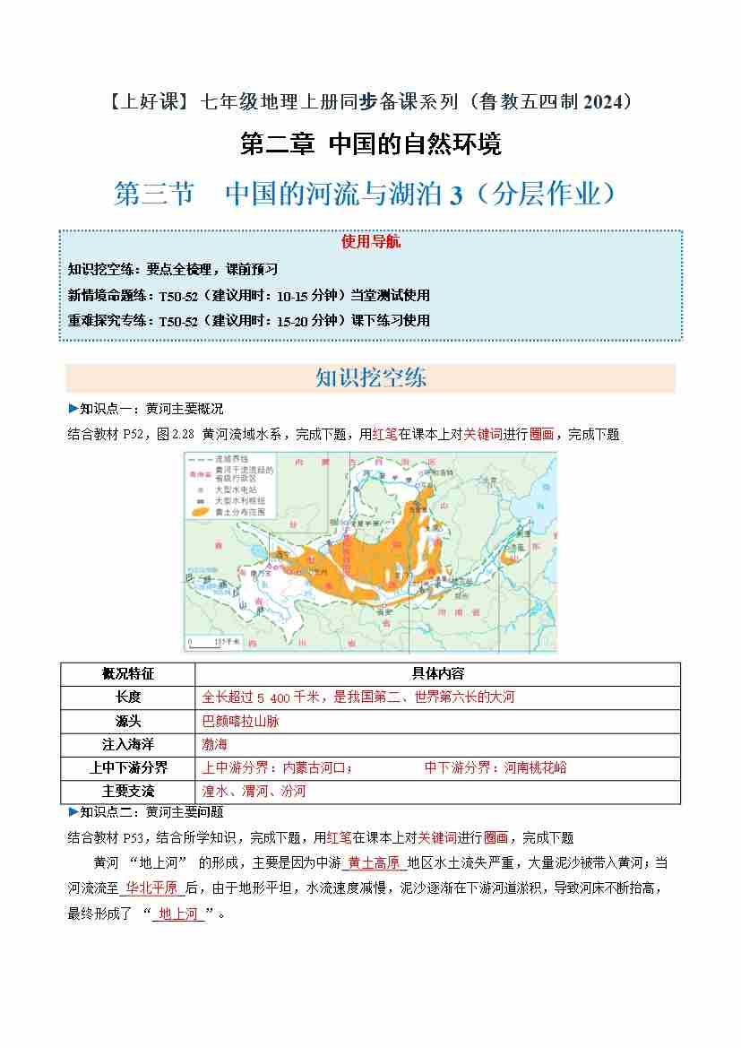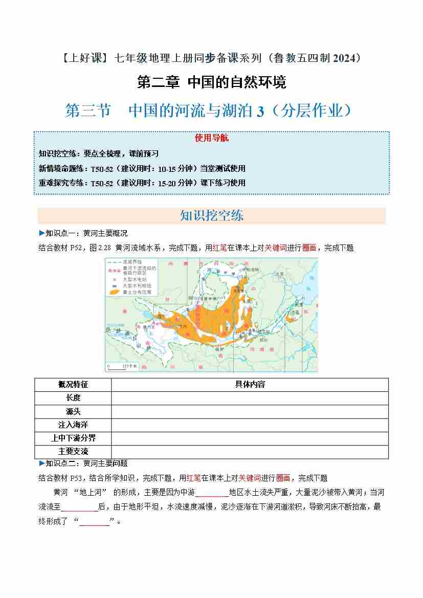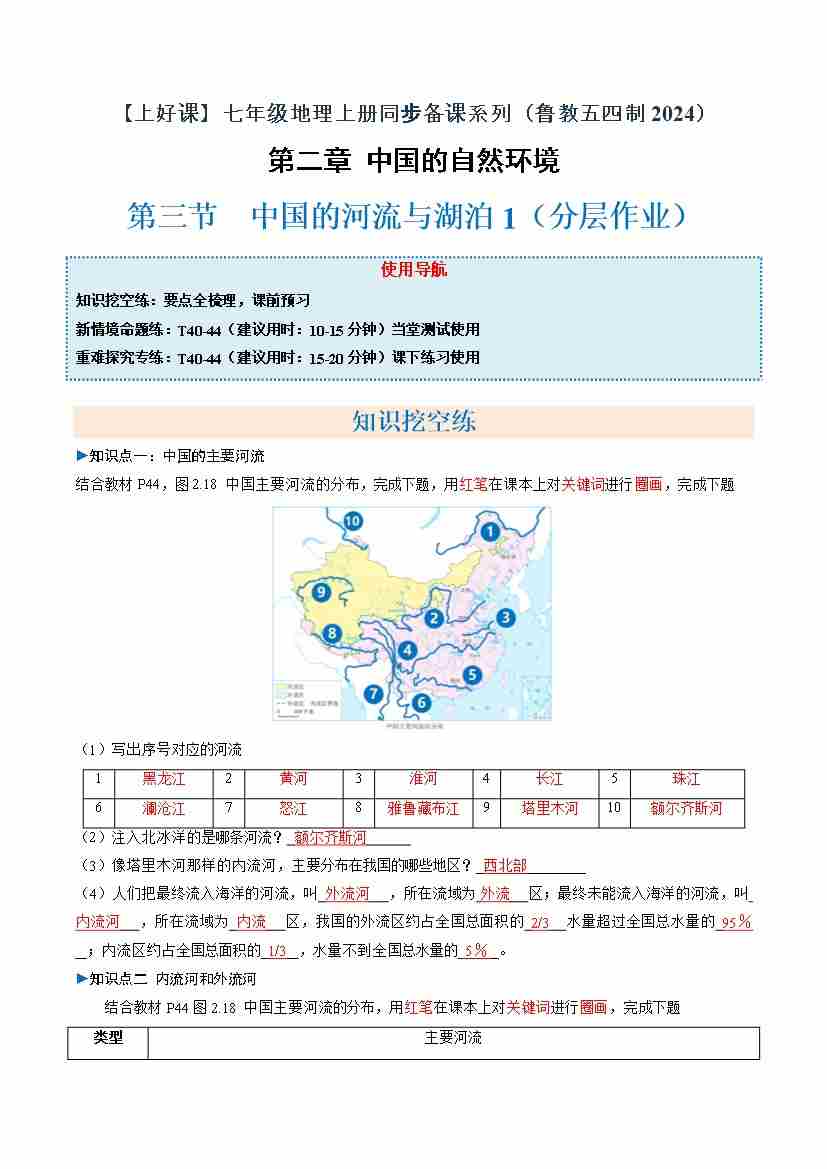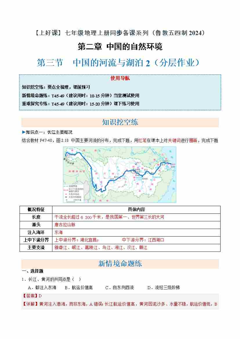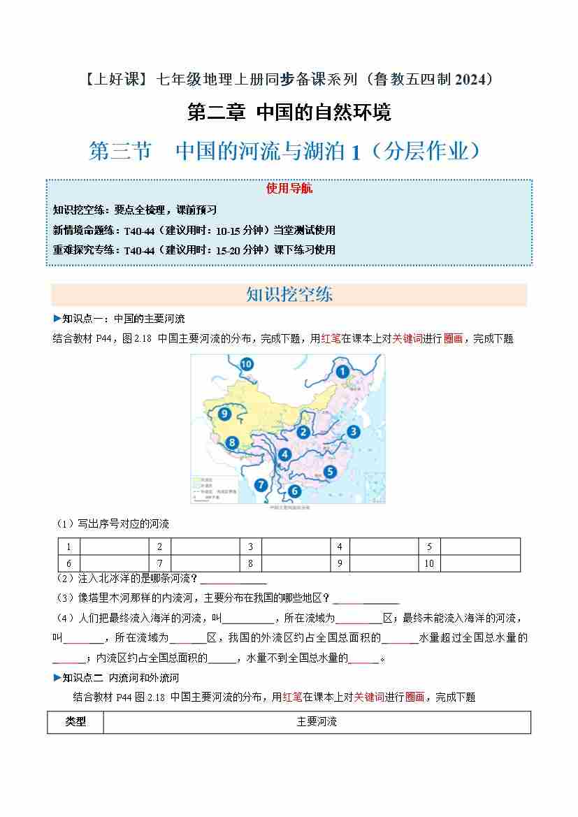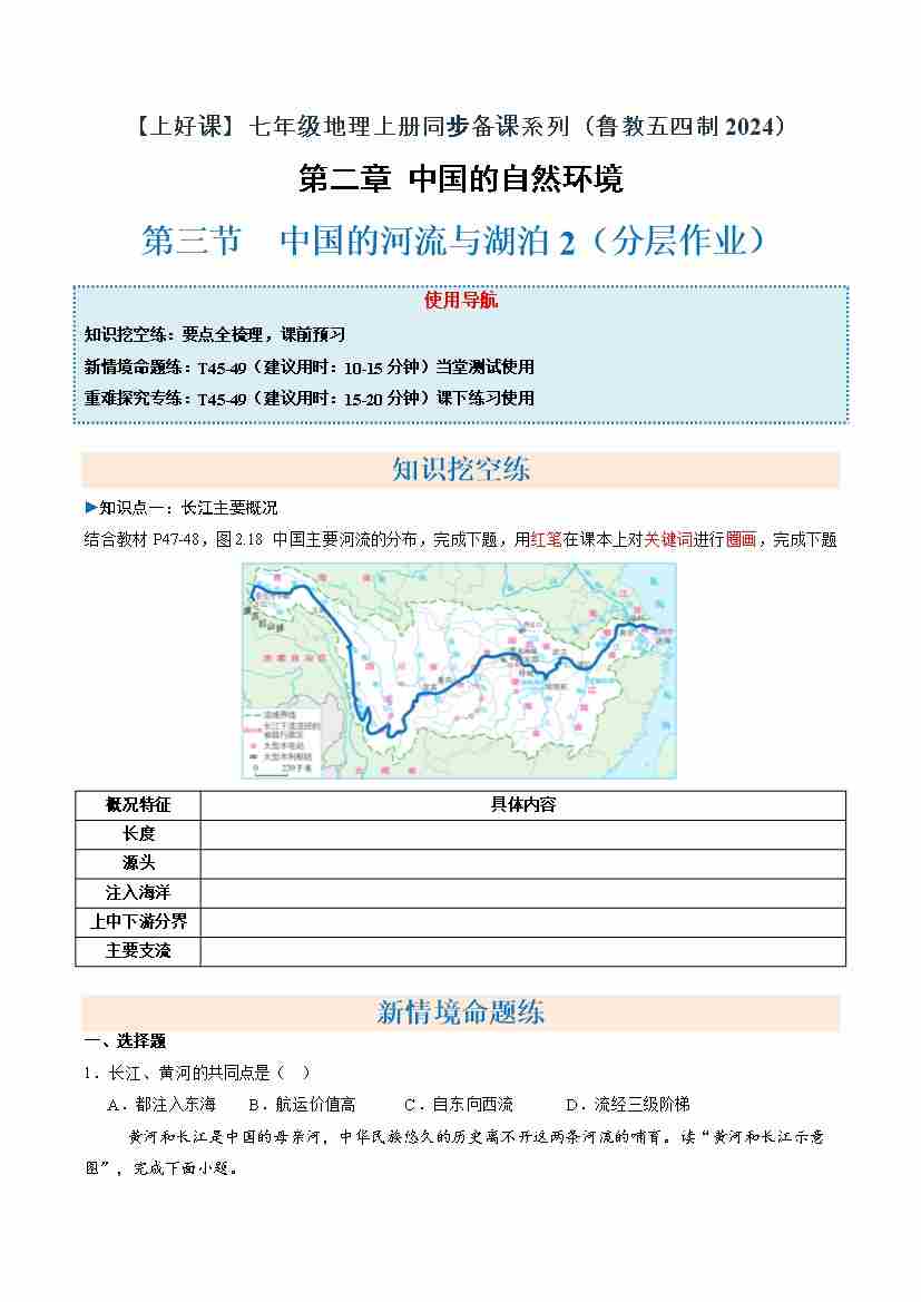 中国的河流与湖泊第1课时(分层作业)(原卷版)