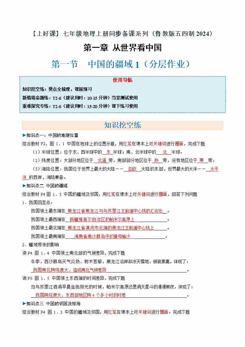 中国的疆域第1课时(分层作业)(解析版)
