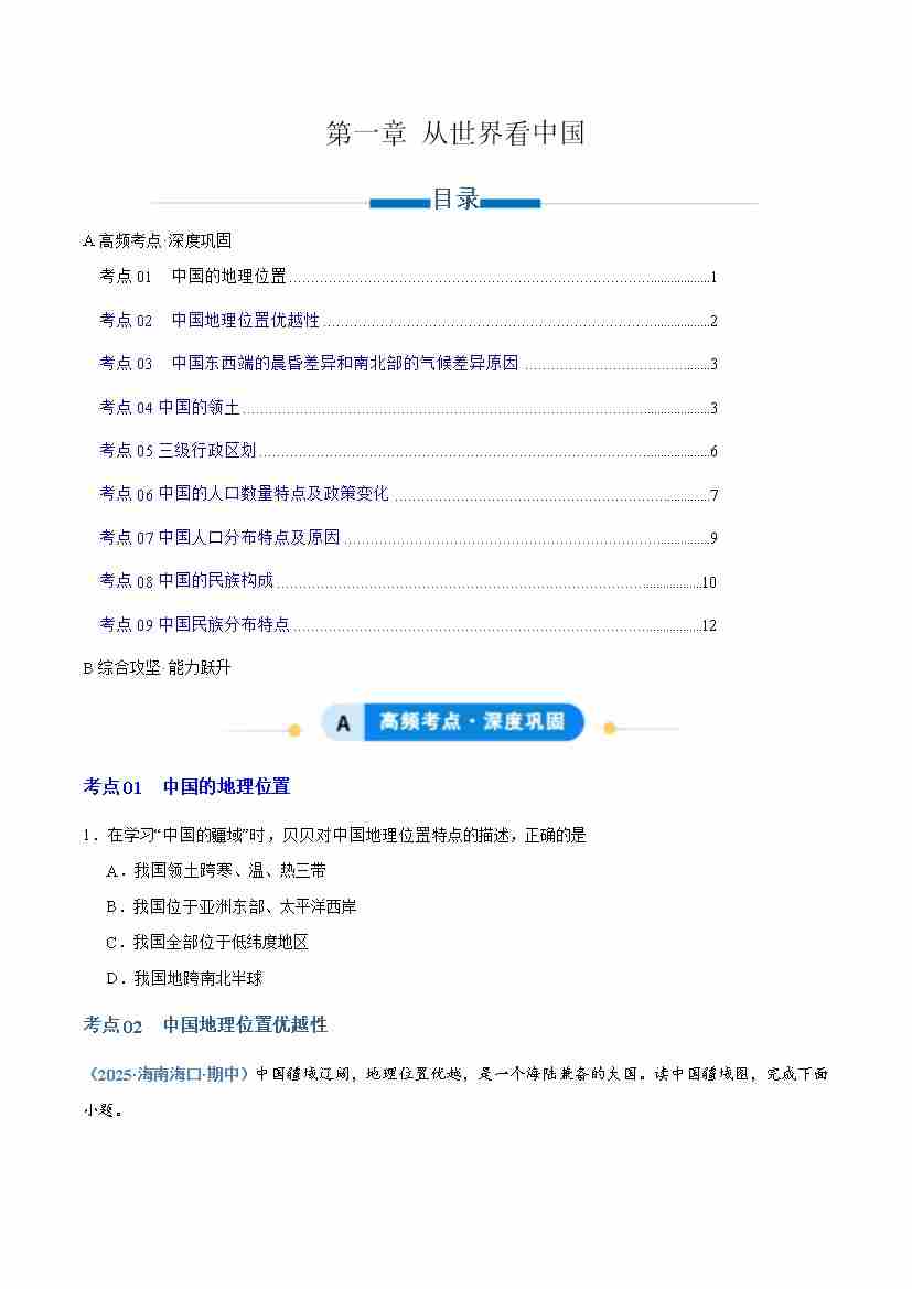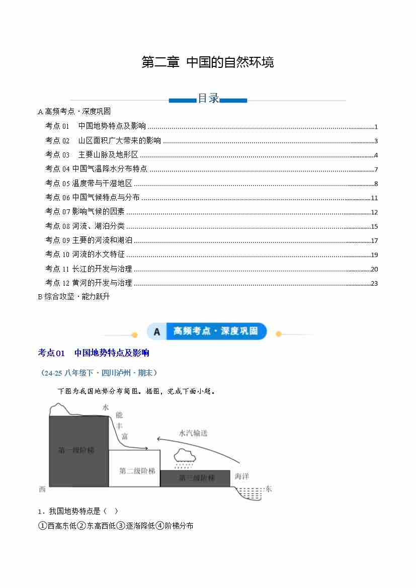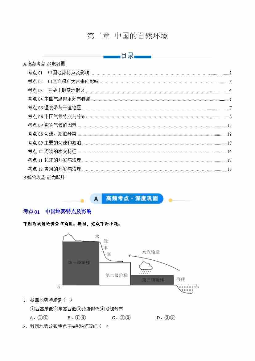 专题02中国的自然环境(专项训练)(学生版)